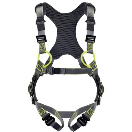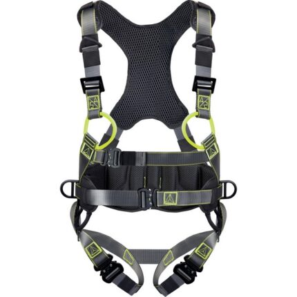 Two colour harness. 2 fall arrester anchorage points (back - front). 5 adjustment buckles, including 3 automatic buckles and 2 irremovable buckles. Soft padding on shoulders and at the pelvis level.